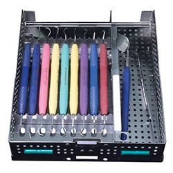 PDT, Missoula, Montana, makes a line of FlipTop Cassettes that enables high-quality, convenient infection management and organization, as well as supporting ergonomic practice. Made from passivated, surgical-grade stainless steel, the FlipTop Cassette’s lid flips up, over, and under to act as its base to create a smaller footprint. The cassette lifts up at an angle, making it easier to identify and pick up instruments, while reducing hand and neck strain. Safety and sterilization features include a built-in needle recapper, air/water syringe clip, and cotton plier clip. They are available in multiple sizes and styles. 800-240-9895; pdtdental.com.