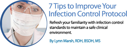 In the oral health care environment, infection control protocol is essential to minimize cross-contamination. Infection control guidelines, professional association guidelines, and government agency regulations are evidence-based standards that should be followed in the oral health care environment.1 Oral health care providers must comply with these standards and proper infection control guidelines to provide the safest possible dental treatment.