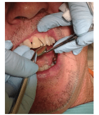 The traditional fulcrum is applicable for most situations; however, variations are necessary, such as an opposite arch (Figure 5), finger-on-finger, cross-arch, and instrument-across-finger fulcrums (Figure 6). These alternatives encourage correct principles of adaptation and activation, as well as support patient comfort and efficacy. Many anomalies can be present in anterior segments, such as rotated, missing, or supernumerary teeth, indicating the need for alternative fulcrum placement. Mobility from traumatic occlusion and periodontitis presents another challenge, and the finger-on-finger fulcrum is beneficial in this situation.