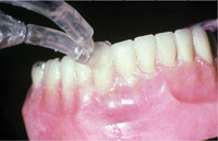Figure 6. A “dry field” device (Isolite™ Isolite Systems) used during scaling with an ultrasonic scaler. These devices place an HVE in the operative field. Research is needed to determine to what extent these devices will reduce aerosols. |