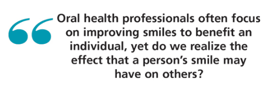 This made me think about the power of a smile and how it can change not only the person giving it, but also the one receiving it. Oral health professionals often focus on improving smiles to benefit an individual, yet do we realize the effect that a person’s smile may have on others? Our efforts can have a tremendous impact on so many. And while we’re celebrating National Children’s Dental Health Month in February, it’s worth noting that keeping smiles healthy from a young age can compound this positive effect over time. The longer people smile throughout their lives, the more they can brighten other people’s days. Over the years, these positive touch points can really add up.