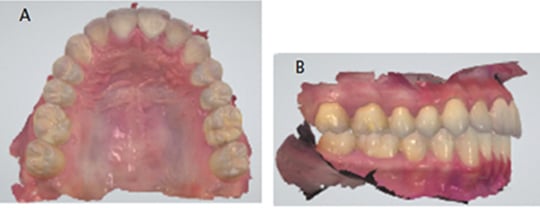 Aligner therapy utilizes computer aided design/computer aided manufacturing (CAD/CAM) technology for the digital setup and manipulation of malocclusions. Teeth are digitally scanned and a three-dimensional digital file is submitted (Figure 3). Alternately, vinyl polysiloxane impressions can be submitted for digitizing by the aligner company. A technician digitally aligns the teeth and sets up the occlusion. The treating dentist views the proposed setup and supplies changes as needed to create a final setup. Once approved, physical models of each treatment stage are created, upon which the aligners are fabricated (Figure 4). Tooth movement proceeds by up to 0.25 mm per aligner/stage, although this may vary by manufacturer. The number of aligners is based on the severity of the individual malocclusion.9