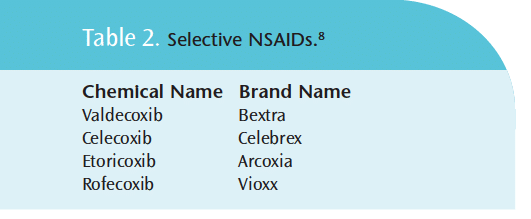 8. United States Food and Drug Administration. COX-2 Selective (includes Bextra, Celebrex, and Vioxx) and Non-Selective Non-Steroidal Anti-Inflammatory Drugs (NSAIDs). Available at: www.fda.gov/Drugs/DrugSafety/PostmarketDrugSafetyInformationforPatientsandProviders/ucm103420.htm. Accessed October 6, 2009.