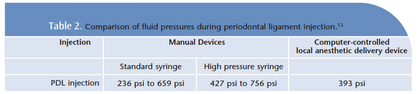 - Loomer PM, Perry DA. Computer-controlled versus syringe delivery of local anesthetic injections for therapeutic scaling and root planning. J Am Dent Assoc. 2004;135:358-365.
