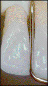 When viewing tactilely smooth root surfaces, the dental endoscope has revealed small remnants of calculus embedded in the root even after “final” ultrasonic or hand instrumentation has been completed. The diamond file is rubbed against the root surface to remove these last very small pieces of calculus while conserving as much root structure as possible.