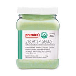 Premier Dental, Plymouth Meeting, Pennsylvania, offers dental offices Vac Attak™ GREEN. This high-performance evacuation system cleaner is safe, effective, and compliant with the Environmental Protection Agency’s new 2020 regulations in support of the United States Clean Water Act. Vac Attak GREEN uses a combination of powerful enzymes with innovative surfactant chemistry to effectively clean evacuation systems, and features a neutral pH, nonfoaming and noncorrosive formula, to make it safe for everyday use with all amalgam separators. Its environmentally friendly formula also meets the American Dental Association’s best management practices. This cleaner is absent of chlorine and oxidizing agents. Dental offices will appreciate its fresh citrus scent and easy-to-use powder. Vac Attak is sold in a case of six 800 g jars. 888-670-6100; premierdentalco.com
