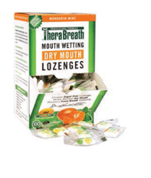 TheraBreath by Dr. Harold Katz, Los Angeles, offers a solution for dry mouth: TheraBreath Dry Mouth Lozenges. The lozenges are designed to alleviate the discomfort of dry mouth by promoting saliva production, which helps defend the mouth and body against bacteria. TheraBreath Dry Mouth Lozenges are formulated with a natural salivary stimulant to help the body produce more saliva. Sweetened with xylitol and fortified with zinc glyconate, these lozenges are designed to help patients maintain healthy teeth and fresh breath. 800-973-7374; therabreath.com.