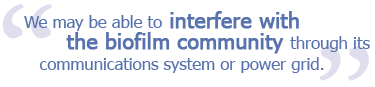 The whole consequence of the biofilm growing as a community means that we may be able to interfere with the community through its communications system or the power grid. This offers up all kinds of possibilities.