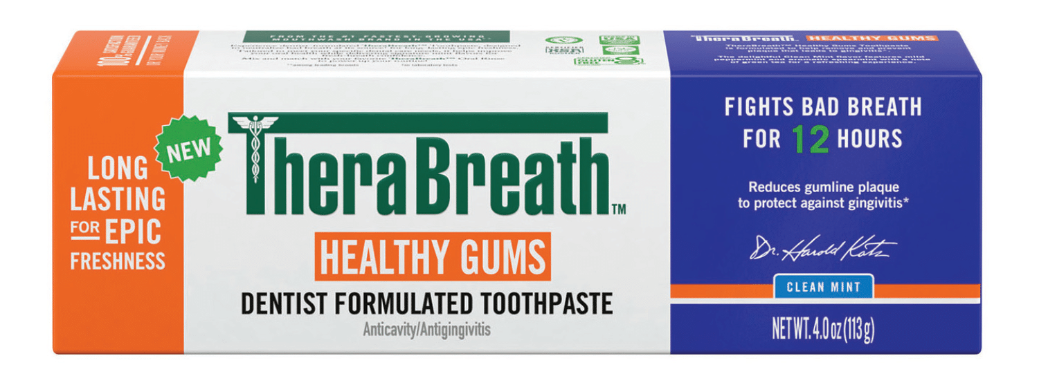 TheraBreath™ Healthy Gums Toothpaste is clinically tested for gum health and long-lasting fresh breath.