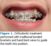 Improved oral health has always been one of orthodontic therapy’s goals. Until the advent of adult orthodontics, traditional orthodontics used the growth patterns of children to help guide the teeth into the desired position for function and esthetics. This often involved the extraction of teeth to create room for tooth movement and moving the teeth so they followed the predicted growth pattern of the jaw. The orthodontic movement of the teeth was usually accomplished by affixing brackets to the teeth and using custom, hand-bent wires to guide the teeth to the desired position (Figure 1). Over the past several decades, adult orthodontic therapy has increased in popularity. This fact has changed the way orthodontic therapy is planned and performed because adult orthodontic therapy must work within relatively fixed skeletal relationships.