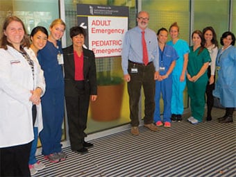 Dental hygiene students with Jacquelyn L. Fried, RDH, BA, MS, engaging in an interprofessional education experience with nurse practitioners at the University of Maryland Medical Center in 2014.