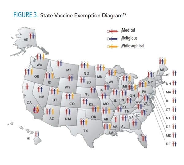 - National Vaccine Information Center. State Vaccine Exemptions. Available at: nvic.org/vaccine-laws/state-vaccine-requirements.aspx. Accessed April 15, 2019.