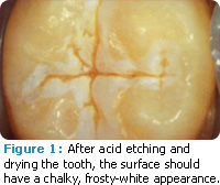 - Air dry tooth surfaces. When completely dry, the tooth structure should have a chalky, frosty-white appearance (Figure 1). If moisture or saliva contamination occurs, re-etch the tooth surface for 15 seconds and dry tooth as previously suggested. Note: some sealants require a moist tooth surface prior to application.