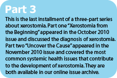 The third and concluding installment of this comprehensive series details proven ways to care for patients experiencing “dry mouth.”