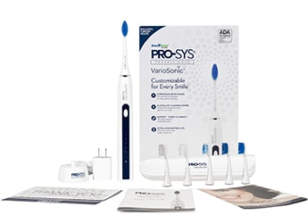 After two years of R&D, Benco Brands is proud to release the PRO-SYS VarioSonic electric toothbrush—the first sonic toothbrush specially designed for healthy patients, as well as patients with compromised soft tissue. With five different brush heads of various stiffnesses in the box and five distinct speeds, the VarioSonic allows 25 possible intensities—perfect for every oral condition.
