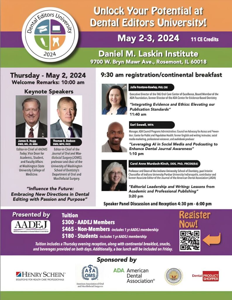 Enjoy networking with other editors and staff in the dental world. Take advantage of the webinars, seminars, annual meeting, and dental editor universities to enhance your skills, your publication, and awareness of current trends, in print, digital, and social media. AADEJ also offers credits to earn a Certified Dental Editor accreditation.