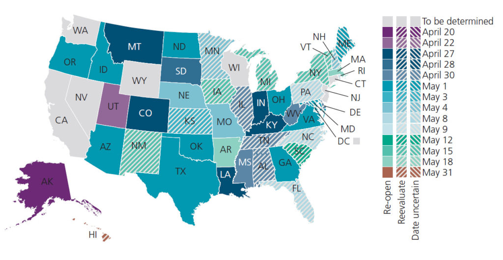 The dental practice openings are, for the most part, dependent on adherence to additional guidelines. For instance, in Kentucky, oral health professionals are required to wear plastic face shields in addition to N95 masks, and patients must be screened at the door for COVID-19 symptoms and seated immediately in an operatory, eliminating waiting rooms. In Louisiana, dental practices must have a 5-day supply of personal protective equipment (PPE) on hand. With the supply chain for PPE still struggling to meet demand, some of these requirements may be difficult to follow at this time. The American Dental Association has released a “Return to Work Interim Guidance Toolkit” to help dental practices prepare for safe reopening. Click here to access it.