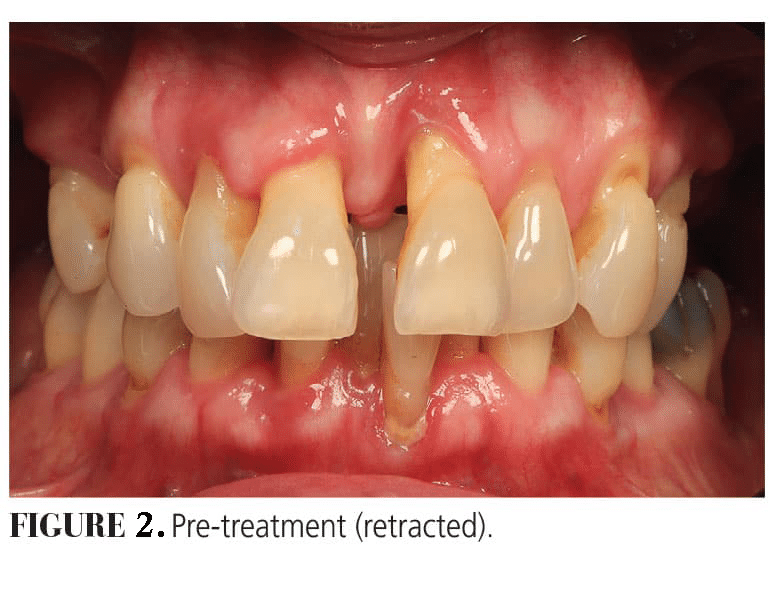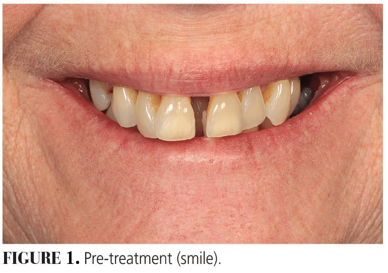 A 55-year-old woman presented with the desire for a fixed implant option (Figures 1 and 2). No significant medical history was noted. A clinical exam revealed advanced periodontal disease with generalized Grade III mobility. An asymptomatic periapical lesion was present on #30. Supra-eruption of the mandibular anterior teeth was noted. Her existing vertical dimension of occlusion was acceptable. She had a moderate smile line.