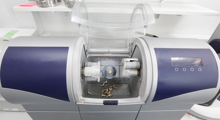 When fabricating restorations, milling machines use a subtractive process via rotary cutters to remove portions of solid blocks of ceramic or composite resin.