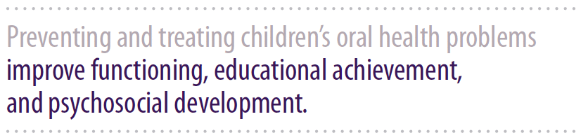 - Preventing and treating children’s oral health problems improve functioning, educational achievement, and psychosocial development