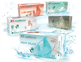 Cranberry USA – Cranberry’s lanolin and vitamin E coated gloves boost moisture levels and minimize skin irritation from repeated glove donning. Lanolin works as a skin softener while vitamin E creates a barrier on skin surfaces to lock moisture in, preventing additional damage from forming. Cranberry offers three coated powder-free nitrile gloves and 2 coated powder-free latex gloves.