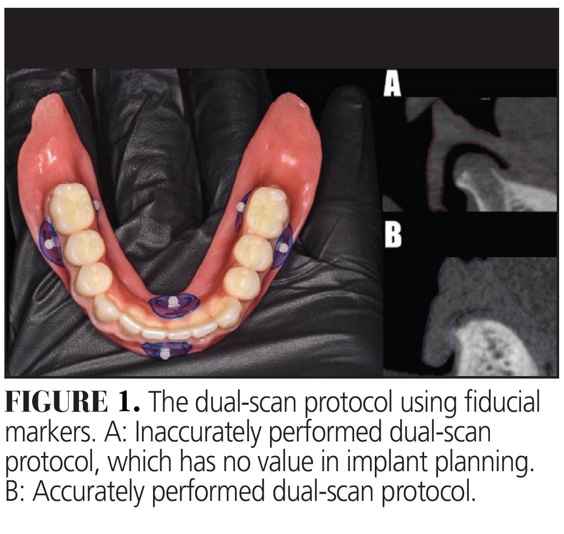 Before implant planning can reach its full digital potential, clinicians must capture precise cone-beam computed tomography (CBCT) data anchored by a stable, well-adapted diagnostic denture. Once the ideal tooth position, vertical occlusal dimension (VOD) in centric relation (CR) and prosthesis design have been established, the next step is to obtain a CBCT scan. If a diagnostic denture is available, the dual-scan protocol becomes an essential technique.1
